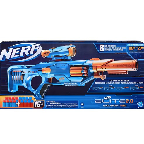 너프 해즈브로 엘리트 2.0 이글포인트 장난감총은 8개의 다트를 수용할 수 있는 드럼과 분리 가능한 스코프 및 배럴을 갖춘 블래스터입니다.품에는 공식 너프 다트 16개가 포함되어 있어, 연속적인 발사가 가능합니다.러한 구성은 사용자가 목표물을 정확하게 조준하고 타격할 수 있도록 도와줍니다.