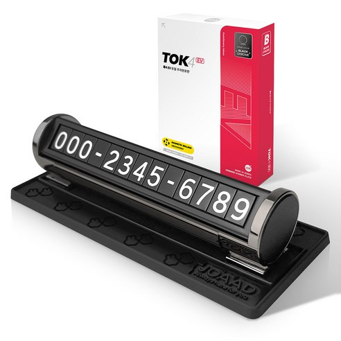 조아애드 톡4 EV 논슬립 듀얼시크릿 주차번호판은 흑크롬 색상의 세련된 디자인으로 차량 인테리어와 조화를 이루며, 주차 시 연락처를 효과적으로 표시하거나 숨길 수 있는 듀얼 시크릿 기능을 제공합니다. 이 제품은 4개의 면을 회전시켜 최대 4개의 연락처를 설정할 수 있으며, 마그네틱 롤링 메커니즘을 통해 부드러운 회전과 확실한 위치 고정을 지원합니다.