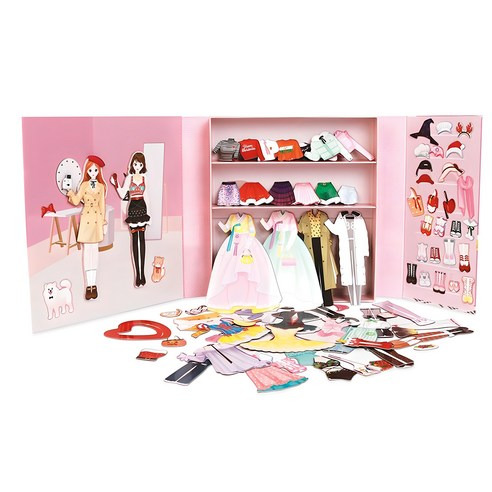 제품의 구성품은 자석 인형 2개, 자석 의상 및 액세서리 50여 개, 그리고 배경 보드로 이루어져 있습니다. 아이들은 다양한 의상을 조합하여 자신만의 독특한 스타일을 만들어볼 수 있습니다. 현재 이 제품은 여러 온라인 쇼핑몰에서 판매 중이며, 가격은 약 36,710원부터 시작합니다. |