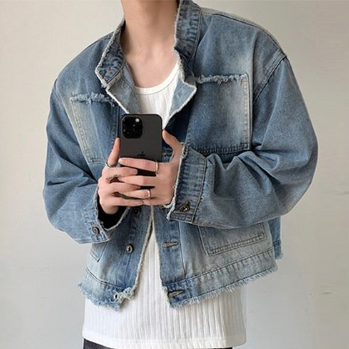 태슬 오버핏 크롭 데미지 남성 청자켓